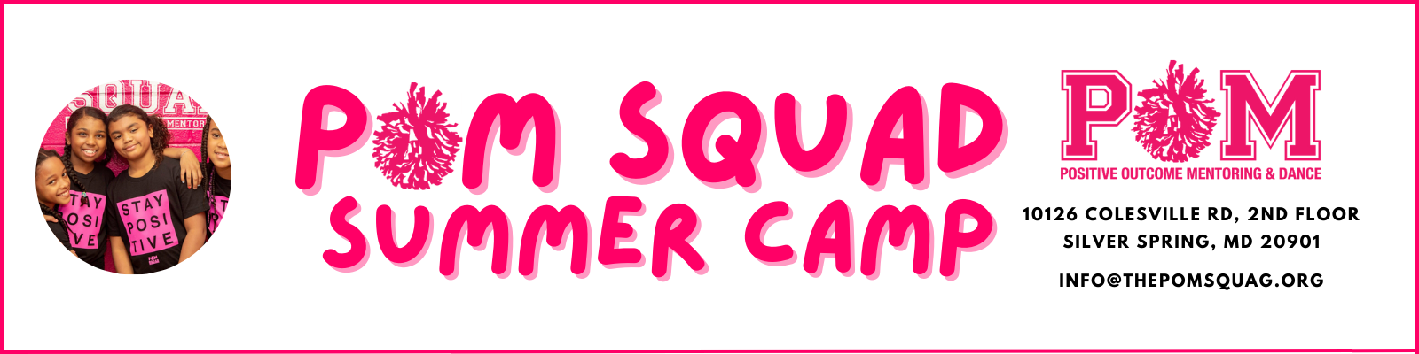 POM Squad is seeking employment applications for camp directors, assistant directors, and counselors for summer 2024 camp, which will run June through August. Applicants must be willing to work indoors and outdoors and be able to work weekday shifts. Minimum age is 16 for counselors and 21 for directors.